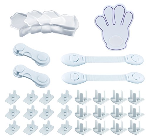 两孔插座盖12个,三孔插座盖12个,可剪裁多功能锁2个,防撞桌角4个,橱柜锁2个,门档1个