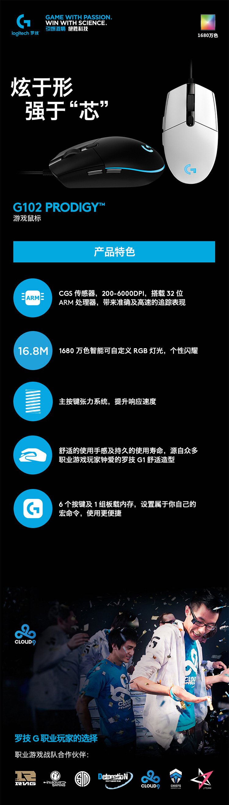炫于形强于“芯”6000DPI的全新CGS光学传感器,精准定位1680万色可自定义智能RGB灯光,个性闪耀