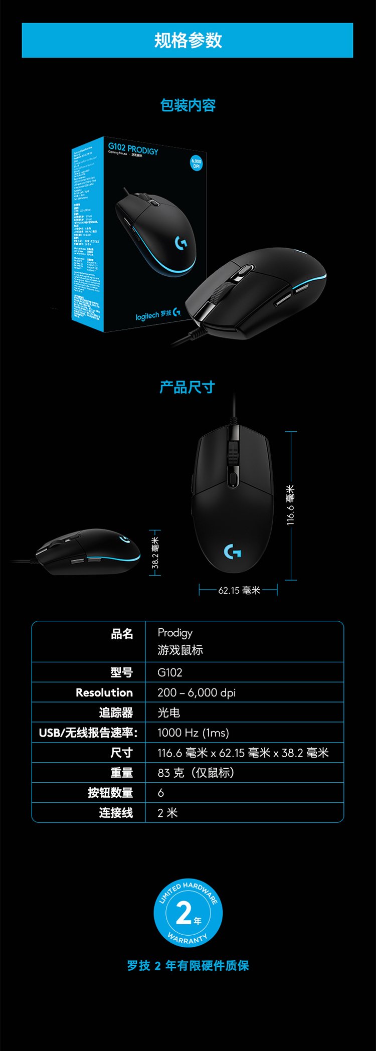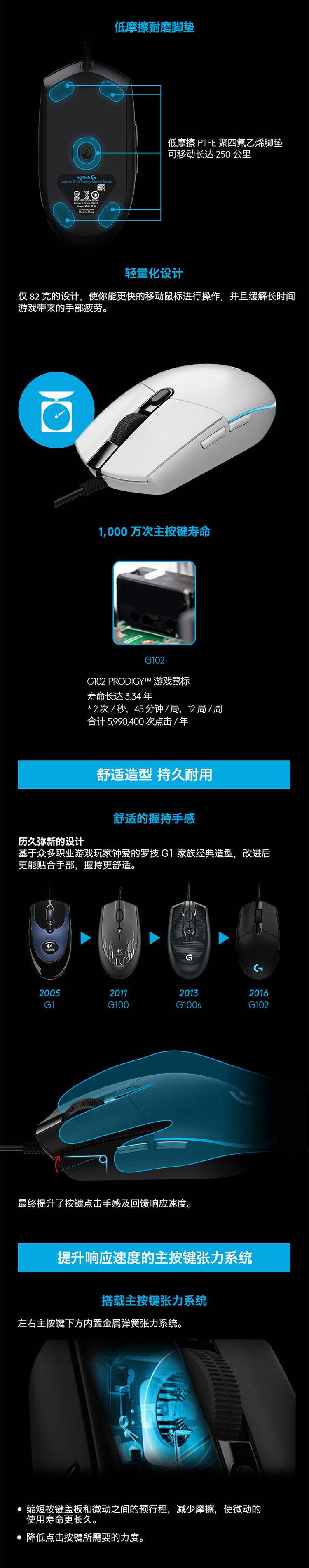 Logitech 罗技 G102有线发光游戏鼠标电竞鼠标黑色(RGB/宏编程版)