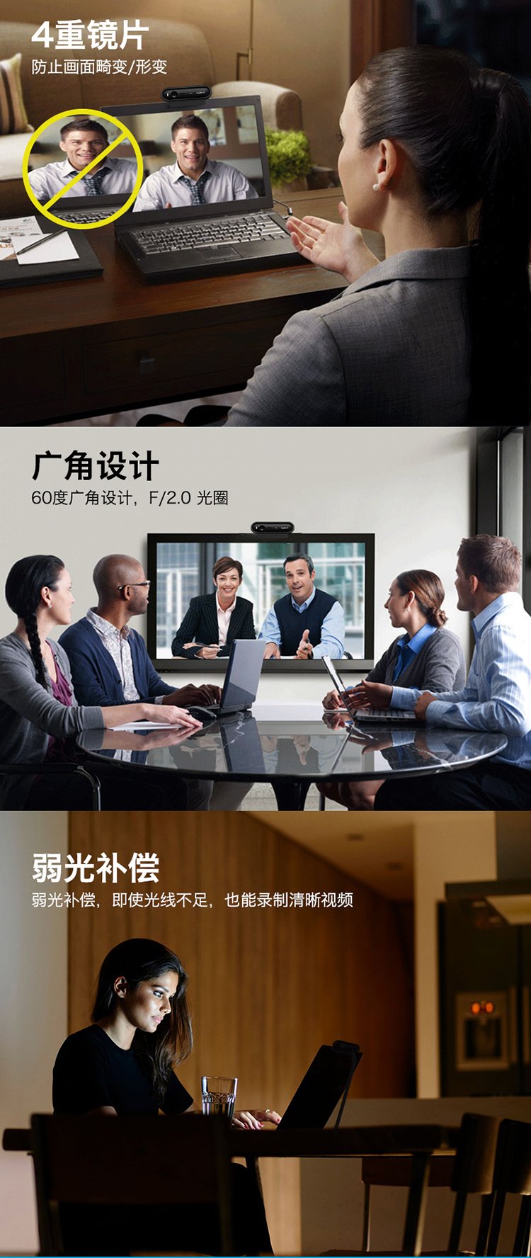 1、4重镜片,60度广角设计F/2.0光圈,即使光线不足,也能录制清晰视频